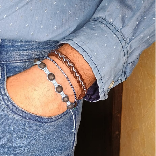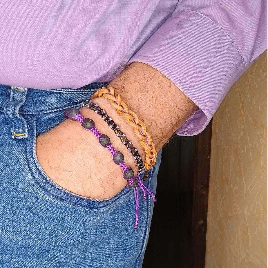 Bracelet AURELIANIS tressage CUIR et nylon Coloré
