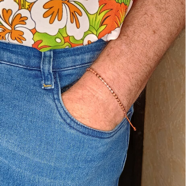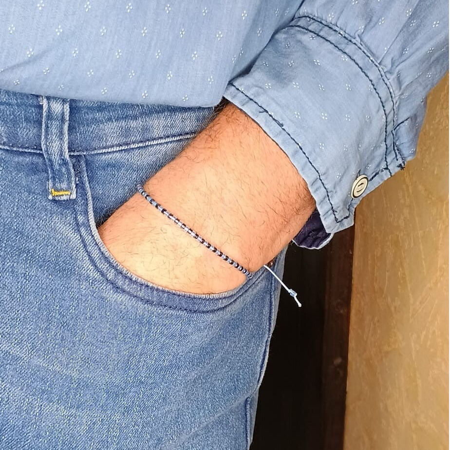 Bracelet composé de perle de riz 2,5mm de 2 couleurs alternées, assemblées en fil nylon 2mm. Ce bracelet est ajustable